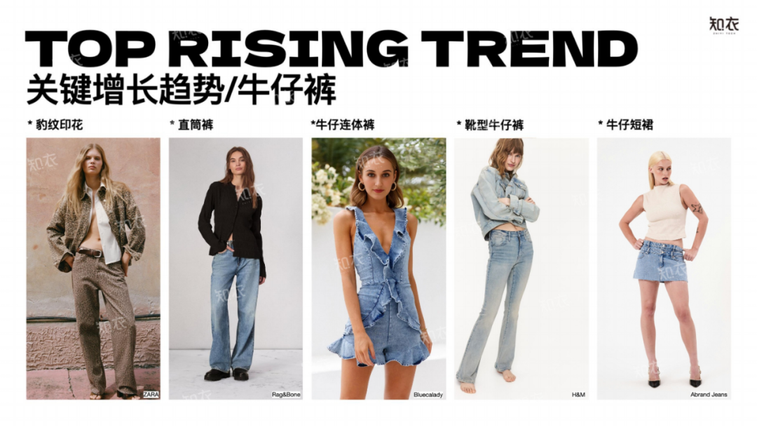 阔腿裤牛仔裤搜索量超过紧身牛仔裤,但受到波西米亚风和西部风的推动,靴型牛仔裤有增长趋势。