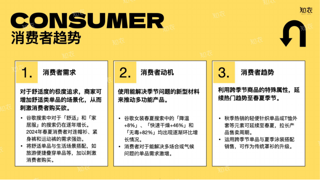 中老年人消费者对节假日购物兴趣增幅较高;旅行便携和抗皱属性着装值得推广。